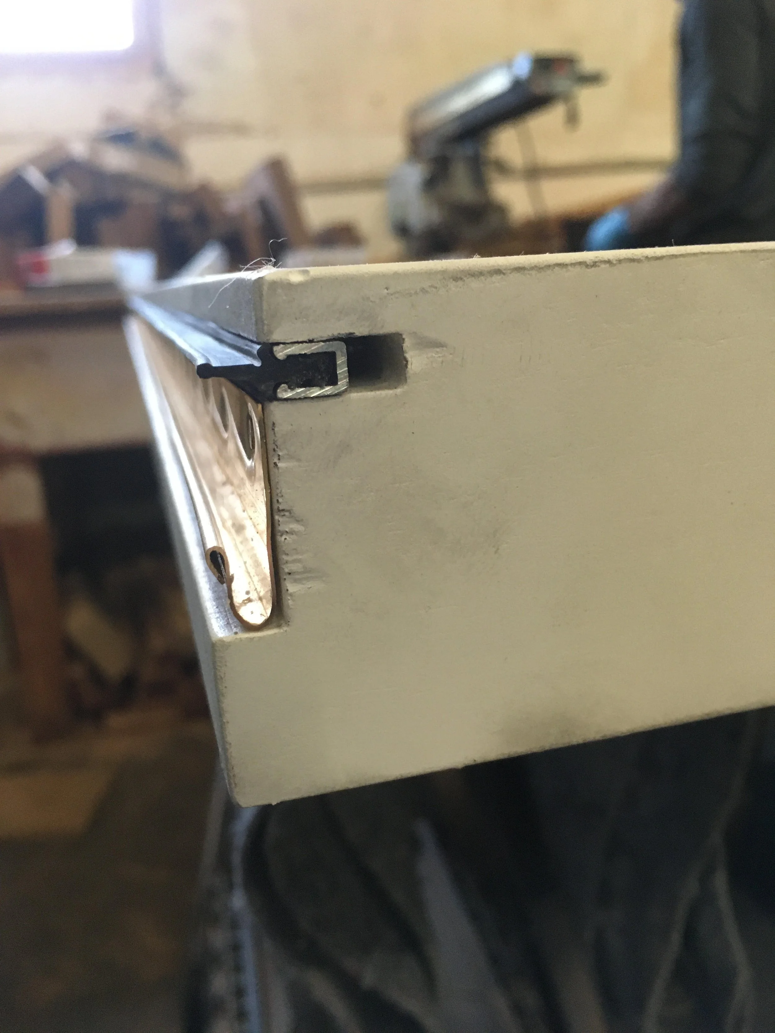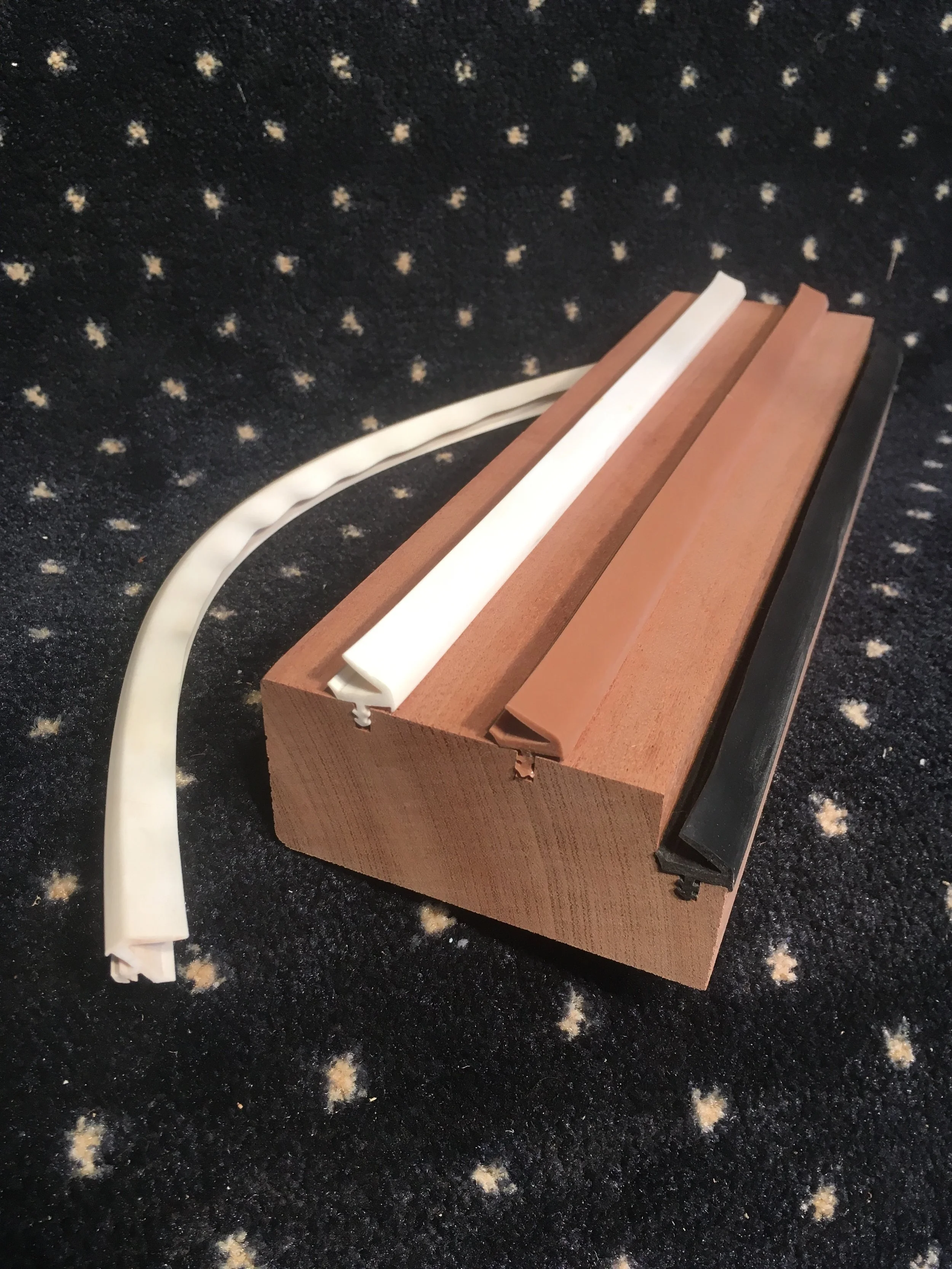 Silicon kerf-in weatherstripping is used around the perimeter of the slab to seal the elements out. Requiring less compression than Q-Lon type weatherstripping, this silicon flap seal will always return to its original shape, as it has little to no “memory”. Available in black, brown, or white.